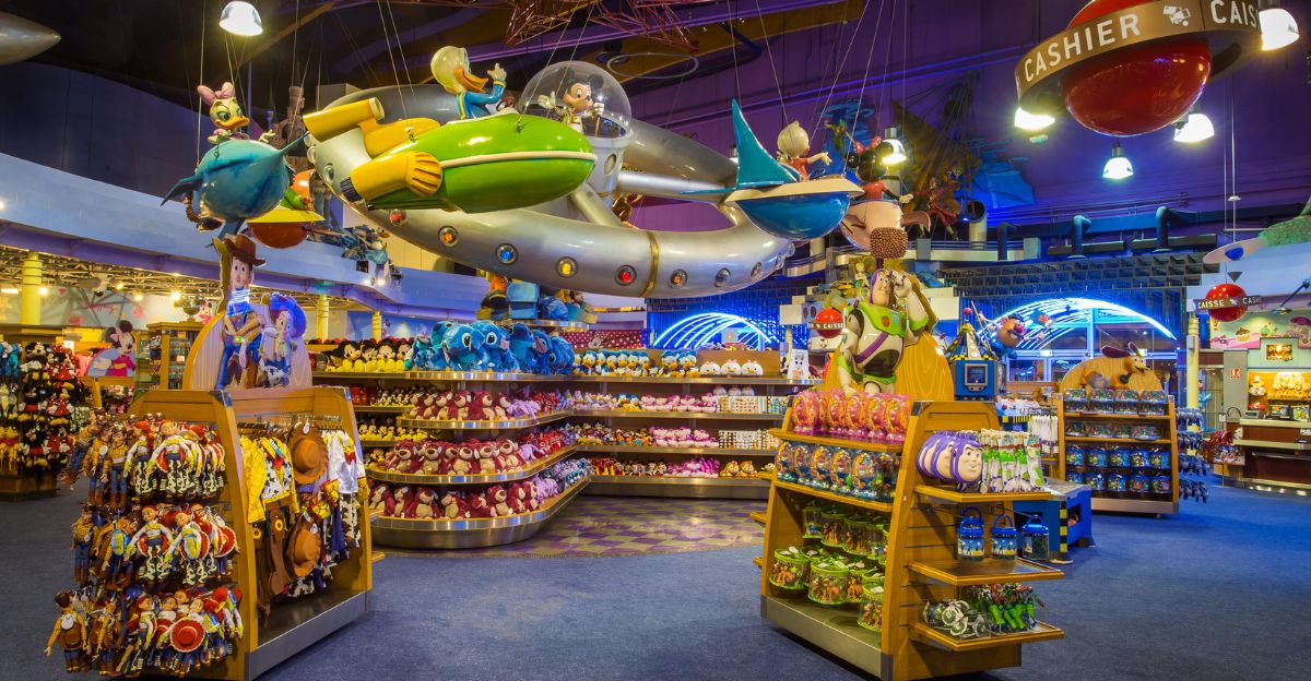 Walking into the Disney Store at Disneyland Paris felt like stepping back to the 1990s. Giant character statues, bold decorations, and immersive shopping defined it.